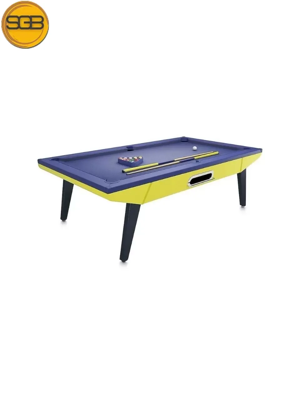 Một trong những chi tiết thú vị trên bộ bàn bi-da này là thiết kế quai strap đặt bên hông, đóng vai trò là nơi treo cơ.